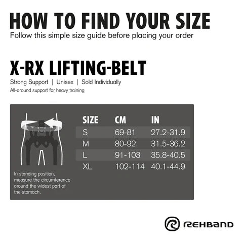 Maattabel X-RX Lifting Belt:
